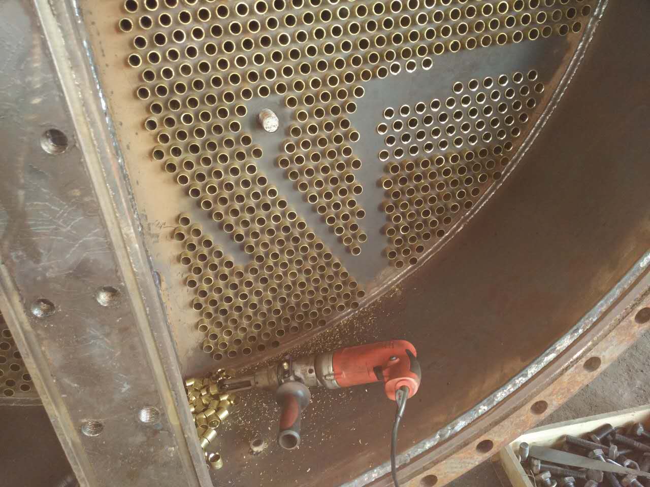 生產(chǎn)凝汽器N-500的現(xiàn)場(chǎng)車(chē)間制造安裝,,過(guò)程!今后連云港靈動(dòng)會(huì)將所有...